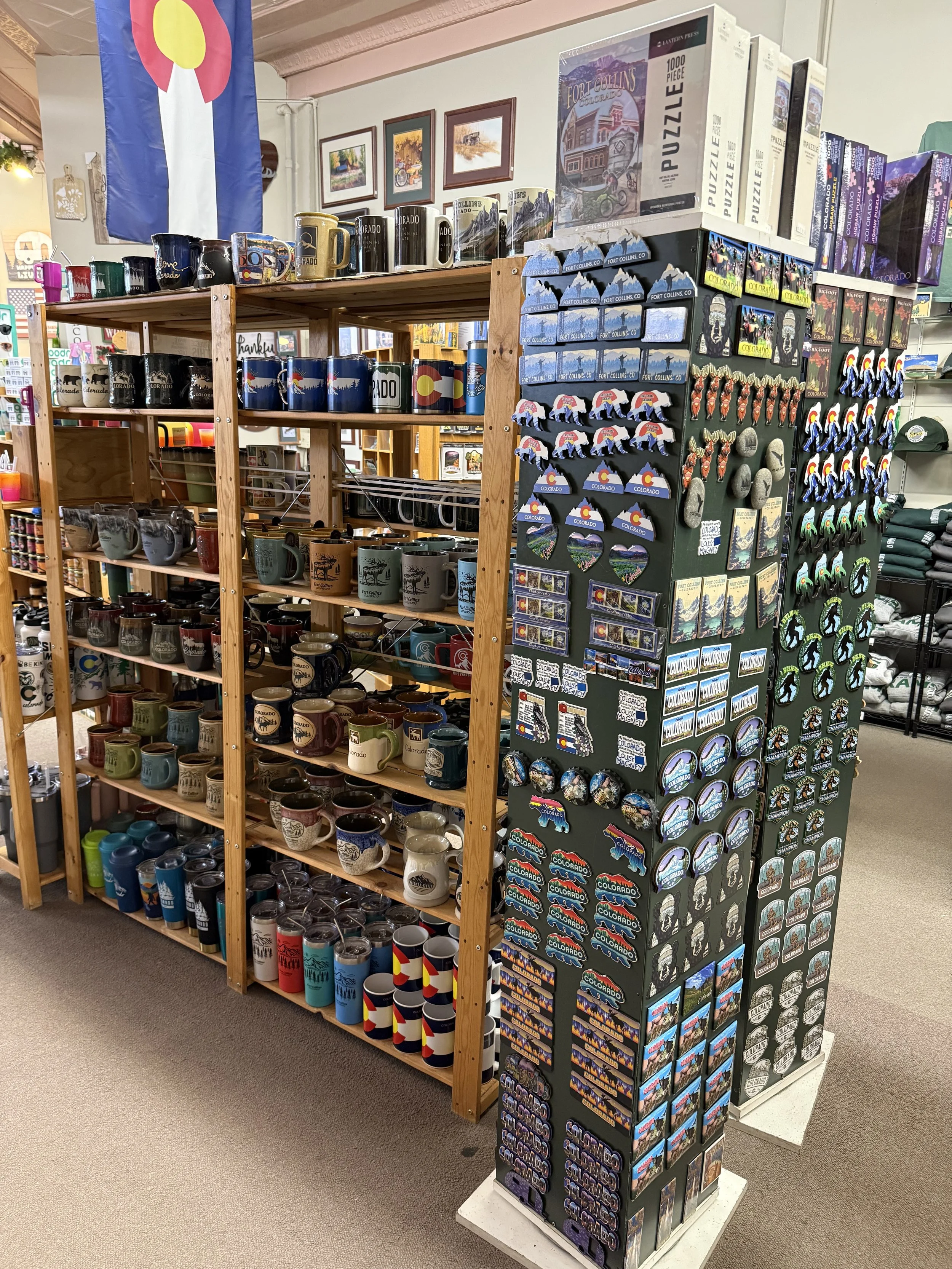 So many mugs and Colorado souvenirs to choose from! We specialize in the much-loved Colorado flag!